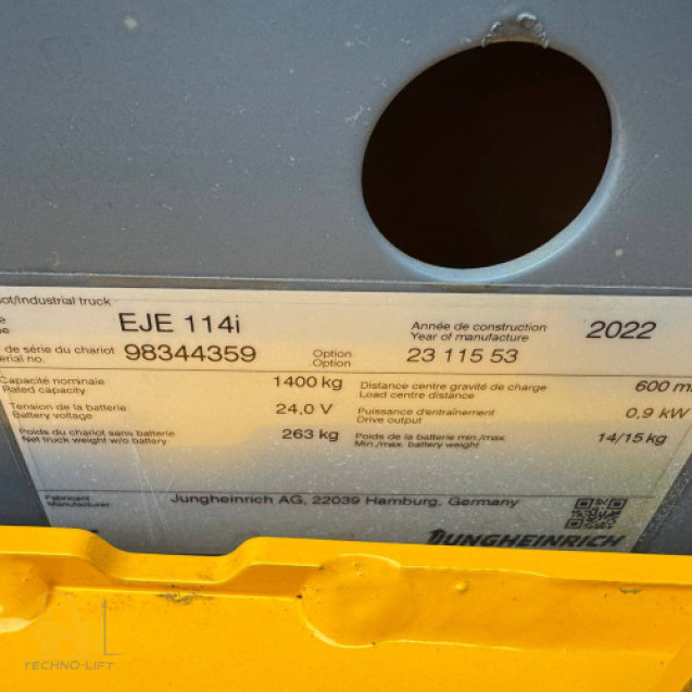 Візок, електричний, JUNGHEINRICH, EJE, 114i, сн, 98344359, мачта, 122, мм, вп, 1400, кг, 2022, р