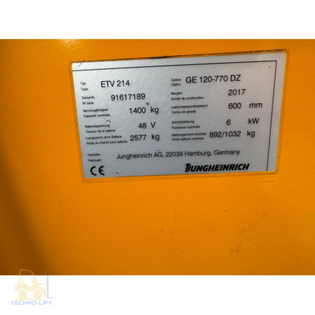 Річтрак, електричний, JUNGHEINRICH, ETV, 214, сн, 91617189, мачта, 6500, DZ, мм, вп, 1400, кг, 2017, рв,