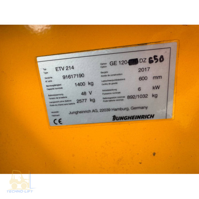 Річтрак, електричний, JUNGHEINRICH, ETV, 214, сн, 91617190, мачта, 6500, DZ, мм, вп, 1400, кг, 2017, рв,